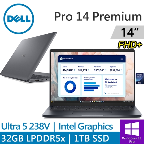 DELL Pro 14 Premium PA14250-U532G1TB 14吋 灰(Intel Ultra 5 238V/32G LPDDR5x/1TB PCIE/W11P)
