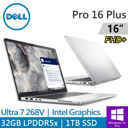 DELL Pro 16 Plus PB16250-U732G1TB 16吋 銀(Intel Ultra 7 268V/32G LPDDR5x/1TB PCIE/W11P)