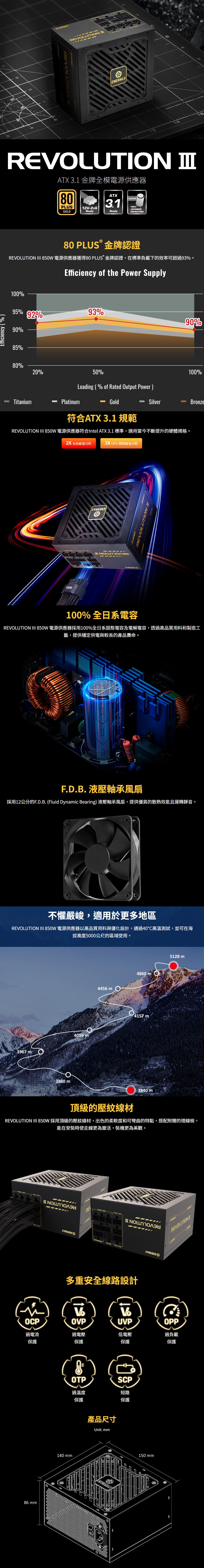 保銳 REVOLUTION III 850W ATX 3.1 金牌/雙8/全模組/全日系/10年保